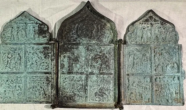 Aydın'ın Germencik ilçesinde jandarmanın durdurduğu otomobilde 200 bin dolar değerinde Bizans dönemine ait Hz. İsa'nın hayatından sahneler işlenmiş aptik triptikon levha ve 1 matara ele geçirildi, 2 kişi gözaltına alındı.