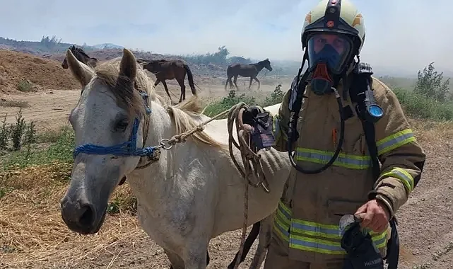 İzmir Büyükşehir Belediyesi İtfaiye Dairesi Başkanlığı ile Veteriner İşleri Dairesi Başkanlığı, Seferihisar ile Menderes arasında geniş bir alanı etkileyen yangınlar nedeniyle aralıksız çalışıyor. İtfaiye ekipleri bir yandan alevleri kontrol altına almak için mücadele ederken, diğer taraftan bölgede bulunan hayvanları kurtarıyor. Ot yangını esnasında tarlada bağlı durumdaki bir at son anda yetişen ekipler tarafından güvenli bölgeye ulaştırıldı. Alevlerin arasından kurtarılan canlılar arasında kuş yavruları da vardı.Mobil hizmet aracında tedavi