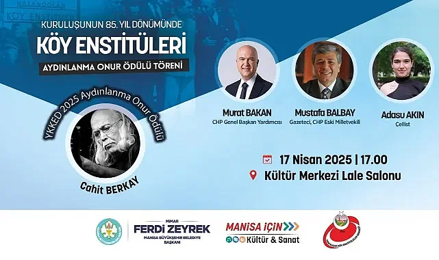 Türkiye’de aydınlanmanın önemli kurumlarından Köy Enstitüleri’nin kuruluşunun 85. yılı, Manisa’da törenle kutlanacak. Usta müzisyen Cahit Berkay, Yeni Kuşak Köy Enstitüleri Derneği (YKKED) 2025 Aydınlanma Onur Ödülü’nü Manisa’da düzenlenen törende alacak.